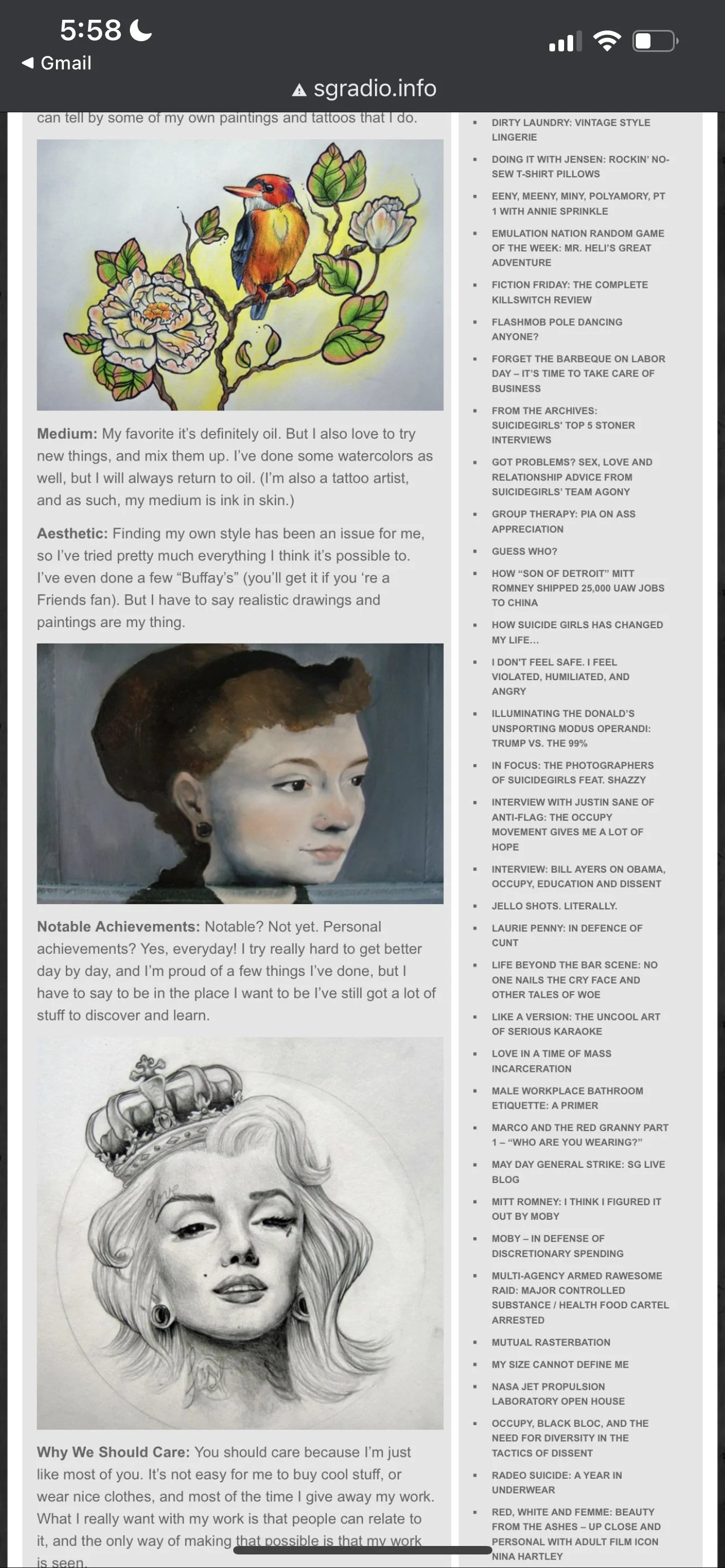 These are some of the articles about my artistic process.